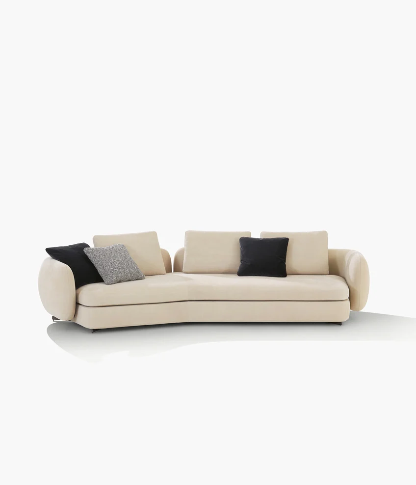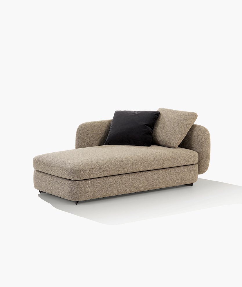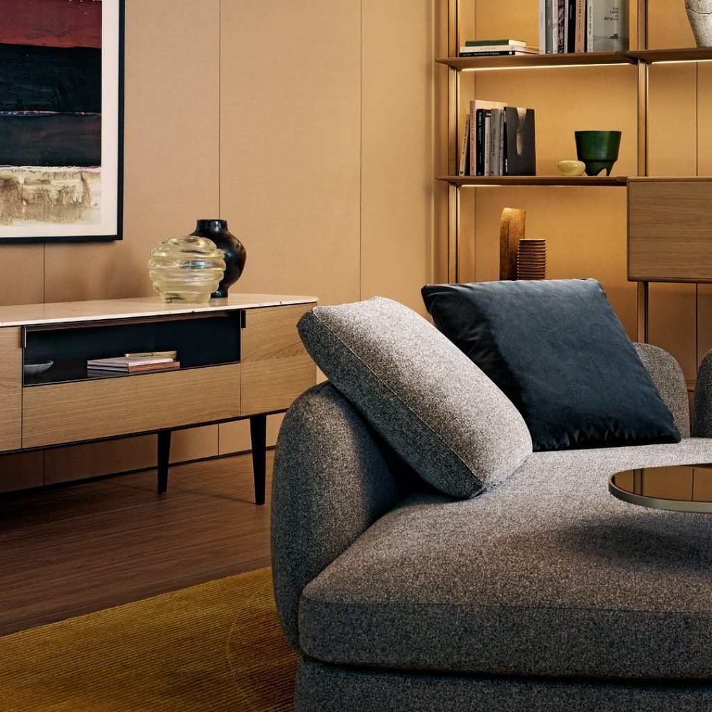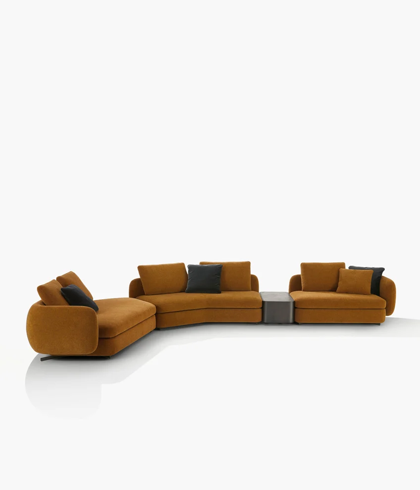 Des lignes douces et enveloppantes reviennent dans tous les éléments de la collection, qui comprend différents modules avec lesquels créer des compositions de formes linéaires, angulaires ou insolites, toujours caractérisées par des jeux de formes et de profondeurs à l’aspect accueillant.